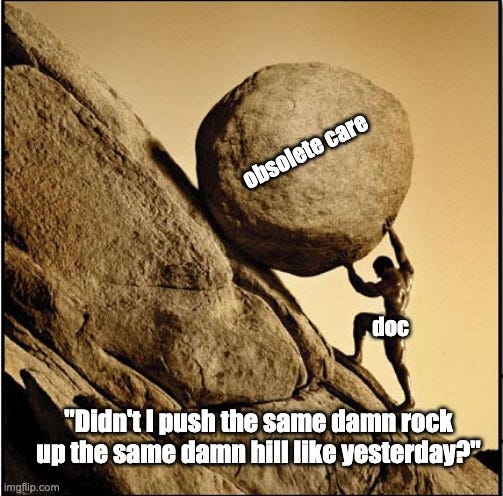 Tomorrow's physician is not a contemporary Sisyphus, doomed to roll the boulder of clinical documentation and waiting room bottlenecks over and over to the top of a mountain, only to have it roll back down to the bottom at the end of each day.